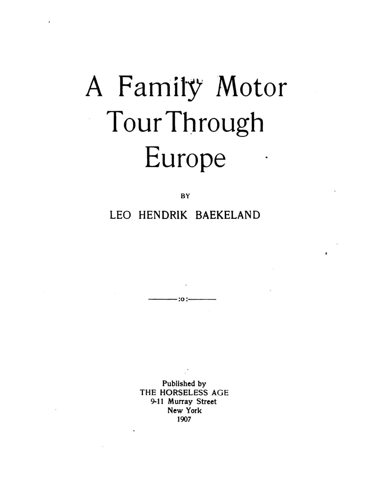 Inventor Leo Baekeland is best known for his plastic Bakelite, used for distributor caps, steering wheels and other automotive components. From reading this work one learns that he was a very early automobile owner, starting in 1899. This trip accounts Baekeland, his family, and chauffeur on an extended journey through Europe in a custom-bodied 1904 Peerless, made in Cleveland. Interesting material about his early experiences in the U.S. and auto technology.